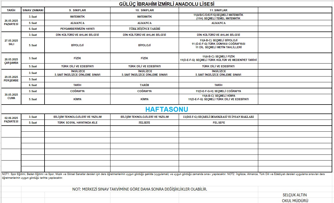 9-10-11. sınıflar sınav tarihleri için aşağıdaki linke tıklayın